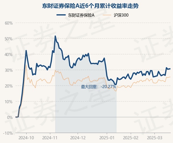 证券之星消息,3月19日,东财证券保险A最新单位净值为1.1411元,累计净值为1.1411元,较前一交易日上涨0.07%。历史数据显示该基金近1个月上涨2.51%,近3个月下跌2.43%,近6个月上涨30.7%,近1年上涨30.34%。该基金近6个月的累计收益率走势如下图: