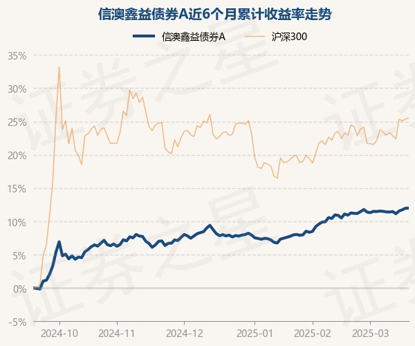 证券之星消息,3月19日,信澳鑫益债券A最新单位净值为1.0847元,累计净值为1.0847元,较前一交易日上涨0.0%。历史数据显示该基金近1个月上涨0.57%,近3个月上涨3.64%,近6个月上涨11.74%,近1年上涨10.32%。该基金近6个月的累计收益率走势如下图:
