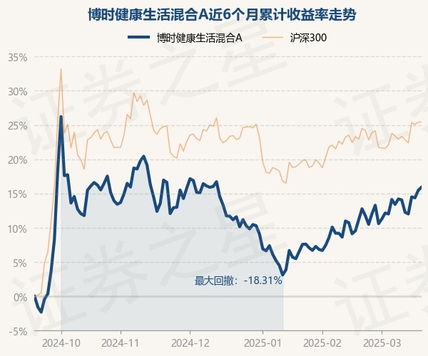 证券之星消息,3月19日,博时健康生活混合A最新单位净值为0.5809元,累计净值为0.5809元,较前一交易日上涨0.4%。历史数据显示该基金近1个月上涨5.81%,近3个月上涨4.27%,近6个月上涨15.92%,近1年下跌0.92%。该基金近6个月的累计收益率走势如下图: