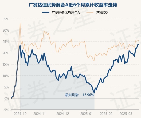 证券之星消息,3月19日,广发估值优势混合A最新单位净值为2.063元,累计净值为2.063元,较前一交易日上涨0.07%。历史数据显示该基金近1个月上涨5.61%,近3个月上涨12.75%,近6个月上涨23.6%,近1年上涨23.7%。该基金近6个月的累计收益率走势如下图: