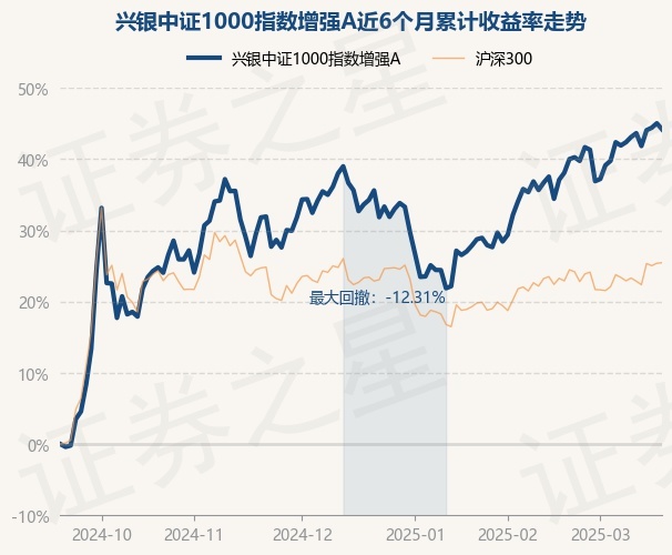 证券之星消息,3月19日,兴银中证1000指数增强A最新单位净值为0.9672元,累计净值为0.9672元,较前一交易日下跌0.58%。历史数据显示该基金近1个月上涨5.18%,近3个月上涨7.4%,近6个月上涨44.21%,近1年上涨20.79%。该基金近6个月的累计收益率走势如下图: