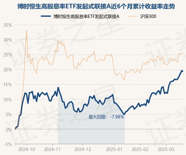 证券之星消息,3月19日,博时恒生高股息率ETF发起式联接A最新单位净值为1.0714元,累计净值为1.0714元,较前一交易日下跌0.21%。历史数据显示该基金近1个月上涨6.5%,近3个月上涨9.63%,近6个月上涨19.31%,近1年上涨26.72%。该基金近6个月的累计收益率走势如下图: