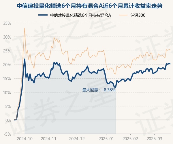 证券之星消息,3月19日,中信建投量化精选6个月持有混合A最新单位净值为0.8108元,累计净值为0.8108元,较前一交易日下跌0.12%。历史数据显示该基金近1个月上涨2.28%,近3个月上涨2.44%,近6个月上涨20.23%,近1年上涨9.7%。该基金近6个月的累计收益率走势如下图: