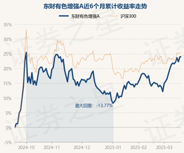 证券之星消息,3月19日,东财有色增强A最新单位净值为1.3231元,累计净值为1.3231元,较前一交易日上涨0.08%。历史数据显示该基金近1个月上涨7.96%,近3个月上涨10.28%,近6个月上涨24.0%,近1年上涨10.76%。该基金近6个月的累计收益率走势如下图: