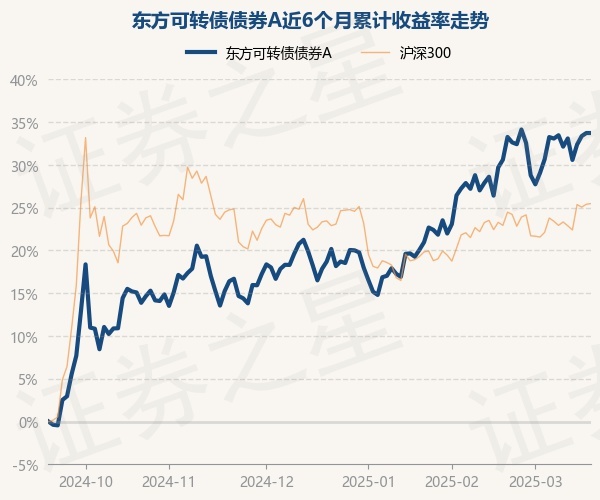 证券之星消息,3月19日,东方可转债债券A最新单位净值为1.0627元,累计净值为1.1077元,较前一交易日上涨0.0%。历史数据显示该基金近1个月上涨1.95%,近3个月上涨11.41%,近6个月上涨32.23%,近1年上涨15.95%。该基金近6个月的累计收益率走势如下图: