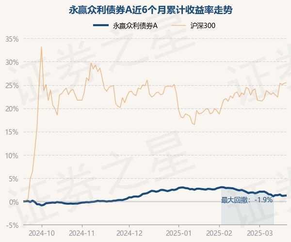 证券之星消息,3月19日,永赢众利债券A最新单位净值为1.171元,累计净值为1.2285元,较前一交易日上涨0.05%。历史数据显示该基金近1个月下跌1.16%,近3个月下跌0.9%,近6个月上涨1.28%,近1年上涨4.88%。该基金近6个月的累计收益率走势如下图: