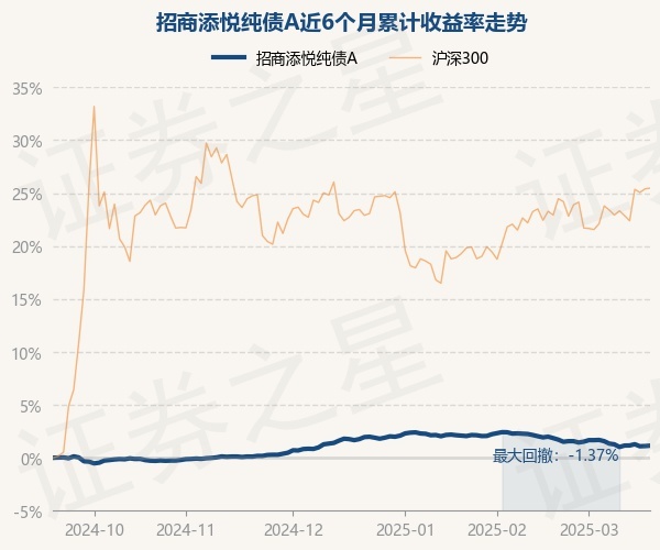 证券之星消息,3月19日,招商添悦纯债A最新单位净值为1.0463元,累计净值为1.2481元,较前一交易日上涨0.04%。历史数据显示该基金近1个月下跌0.83%,近3个月下跌0.61%,近6个月上涨1.14%,近1年上涨3.43%。该基金近6个月的累计收益率走势如下图:
