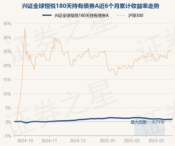 证券之星消息,3月19日,兴证全球恒悦180天持有债券A最新单位净值为1.1282元,累计净值为1.1282元,较前一交易日上涨0.05%。历史数据显示该基金近1个月下跌0.38%,近3个月下跌0.14%,近6个月上涨0.83%,近1年上涨2.58%。该基金近6个月的累计收益率走势如下图:
