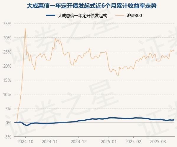 证券之星消息,3月19日,大成惠信一年定开债发起式最新单位净值为1.059元,累计净值为1.099元,较前一交易日上涨0.07%。历史数据显示该基金近1个月下跌0.46%,近3个月下跌0.25%,近6个月上涨0.89%,近1年上涨3.12%。该基金近6个月的累计收益率走势如下图: