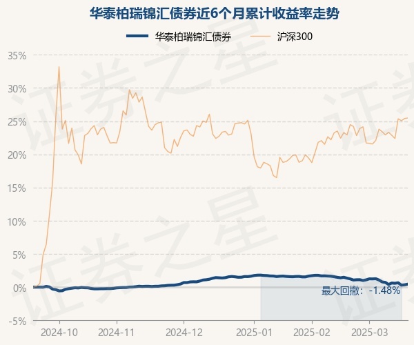 证券之星消息,3月19日,华泰柏瑞锦汇债券最新单位净值为1.0196元,累计净值为1.044元,较前一交易日上涨0.1%。历史数据显示该基金近1个月下跌1.02%,近3个月下跌0.96%,近6个月上涨0.45%,近1年上涨2.05%。该基金近6个月的累计收益率走势如下图: