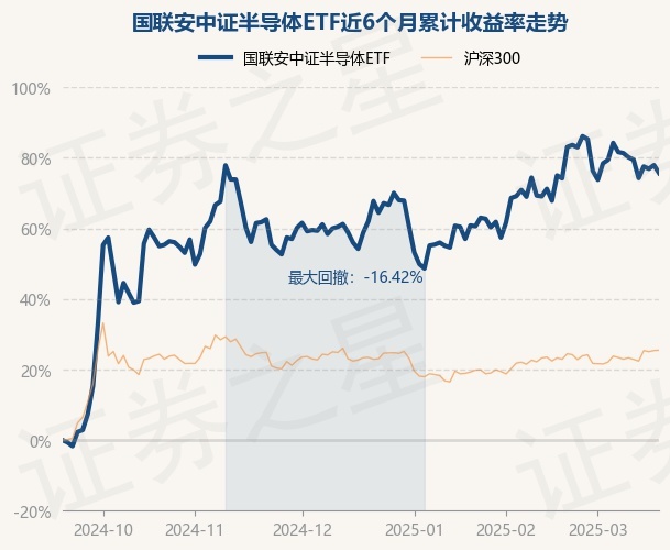 证券之星消息,3月19日,国联安中证半导体ETF最新单位净值为1.1043元,累计净值为2.2086元,较前一交易日下跌1.27%。历史数据显示该基金近1个月上涨0.38%,近3个月上涨8.42%,近6个月上涨75.68%,近1年上涨46.65%。该基金近6个月的累计收益率走势如下图:
