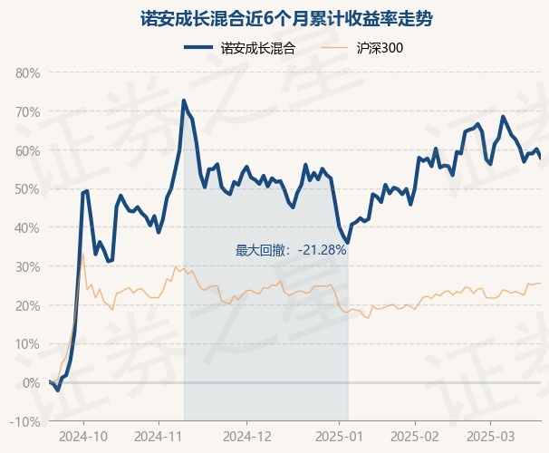 证券之星消息,3月19日,诺安成长混合最新单位净值为1.487元,累计净值为1.932元,较前一交易日下跌1.39%。历史数据显示该基金近1个月下跌0.93%,近3个月上涨4.64%,近6个月上涨57.86%,近1年上涨28.19%。该基金近6个月的累计收益率走势如下图: