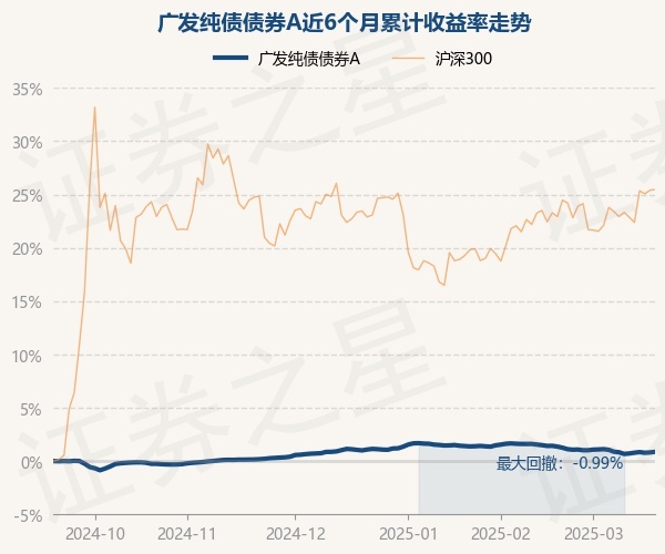 证券之星消息,3月19日,广发纯债债券A最新单位净值为1.2483元,累计净值为1.6956元,较前一交易日上涨0.06%。历史数据显示该基金近1个月下跌0.56%,近3个月下跌0.14%,近6个月上涨0.87%,近1年上涨3.62%。该基金近6个月的累计收益率走势如下图: