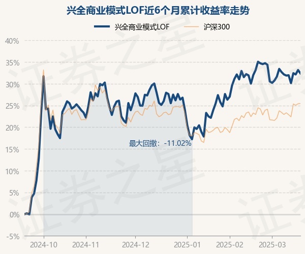 证券之星消息,3月19日,兴全商业模式LOF最新单位净值为3.621元,累计净值为4.481元,较前一交易日下跌0.58%。历史数据显示该基金近1个月上涨0.3%,近3个月上涨3.49%,近6个月上涨32.39%,近1年上涨19.98%。该基金近6个月的累计收益率走势如下图: