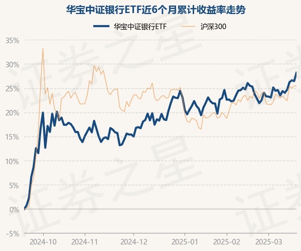 证券之星消息,3月19日,华宝中证银行ETF最新单位净值为1.5458元,累计净值为1.5458元,较前一交易日上涨1.36%。历史数据显示该基金近1个月上涨2.16%,近3个月上涨8.14%,近6个月上涨28.19%,近1年上涨35.93%。该基金近6个月的累计收益率走势如下图: