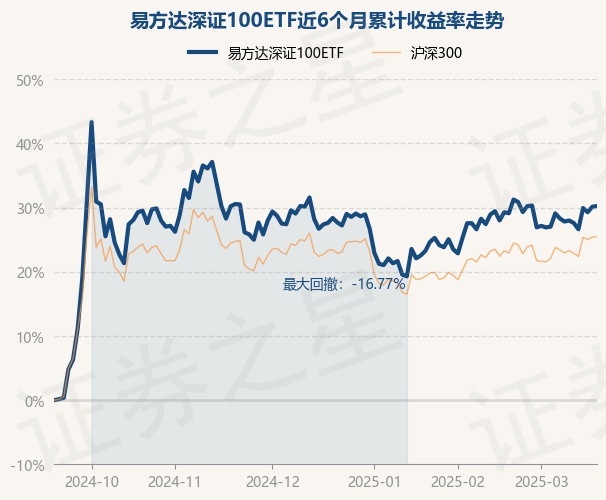 证券之星消息,3月19日,易方达深证100ETF最新单位净值为2.8491元,累计净值为5.5243元,较前一交易日上涨0.09%。历史数据显示该基金近1个月上涨0.75%,近3个月上涨1.45%,近6个月上涨30.25%,近1年上涨13.19%。该基金近6个月的累计收益率走势如下图: