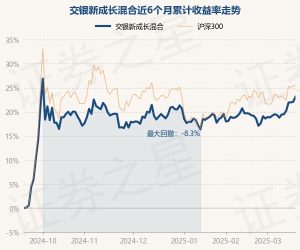 证券之星消息,3月19日,交银新成长混合最新单位净值为3.296元,累计净值为3.696元,较前一交易日上涨0.86%。历史数据显示该基金近1个月上涨2.94%,近3个月上涨3.39%,近6个月上涨23.12%,近1年上涨0.43%。该基金近6个月的累计收益率走势如下图: