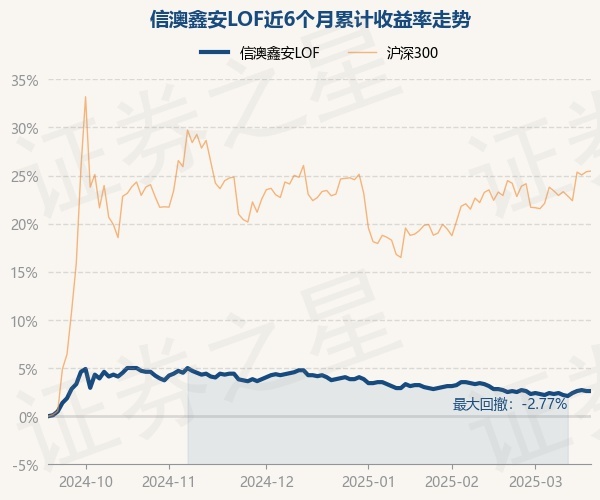 证券之星消息,3月19日,信澳鑫安LOF最新单位净值为0.996元,累计净值为1.374元,较前一交易日上涨0.0%。历史数据显示该基金近1个月下跌0.2%,近3个月下跌1.39%,近6个月上涨2.6%,近1年上涨0.62%。该基金近6个月的累计收益率走势如下图: