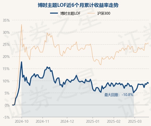 证券之星消息,3月19日,博时主题LOF最新单位净值为1.002元,累计净值为5.697元,较前一交易日下跌0.3%。历史数据显示该基金近1个月上涨0.8%,近3个月下跌0.79%,近6个月上涨8.91%,近1年上涨0.3%。该基金近6个月的累计收益率走势如下图: