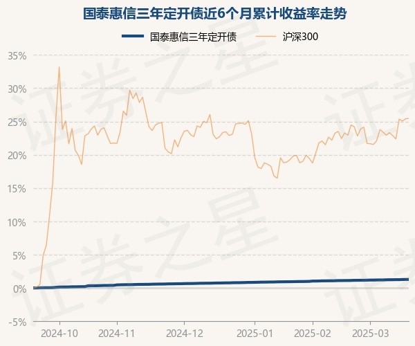 证券之星消息,3月19日,国泰惠信三年定开债最新单位净值为1.0019元,累计净值为1.1438元,较前一交易日上涨0.0%。历史数据显示该基金近1个月上涨0.16%,近3个月上涨0.51%,近6个月上涨1.28%,近1年上涨2.44%。该基金近6个月的累计收益率走势如下图: