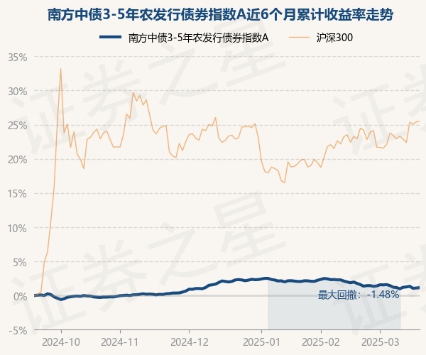 证券之星消息,3月19日,南方中债3-5年农发行债券指数A最新单位净值为1.0996元,累计净值为1.2526元,较前一交易日上涨0.05%。历史数据显示该基金近1个月下跌0.81%,近3个月下跌0.9%,近6个月上涨1.14%,近1年上涨4.24%。该基金近6个月的累计收益率走势如下图: