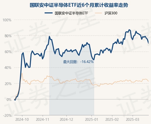证券之星消息,3月20日,国联安中证半导体ETF最新单位净值为1.0945元,累计净值为2.189元,较前一交易日下跌0.89%。历史数据显示该基金近1个月下跌0.04%,近3个月上涨3.78%,近6个月上涨75.23%,近1年上涨45.18%。该基金近6个月的累计收益率走势如下图: