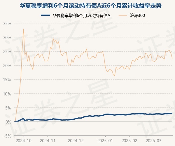 华夏稳享增利6个月滚动持有债A为债券型-混合二级基金,根据最新一期基金季报显示,该基金资产配置:股票占净值比5.29%,债券占净值比98.06%,现金占净值比0.66%。基金十大重仓股如下: