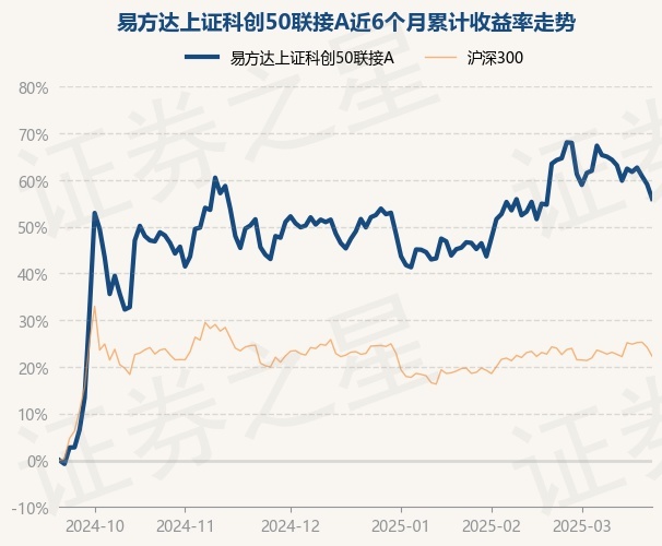 证券之星消息,3月20日,易方达上证科创50联接A最新单位净值为0.8277元,累计净值为0.8277元,较前一交易日下跌1.06%。历史数据显示该基金近1个月上涨2.82%,近3个月上涨4.9%,近6个月上涨59.08%,近1年上涨28.41%。该基金近6个月的累计收益率走势如下图:
