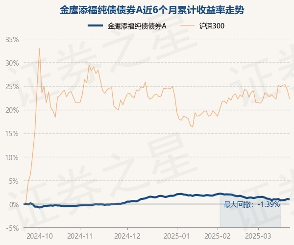 证券之星消息,3月20日,金鹰添福纯债债券A最新单位净值为1.0079元,累计净值为1.0587元,较前一交易日上涨0.2%。历史数据显示该基金近1个月下跌0.52%,近3个月下跌0.61%,近6个月上涨1.04%,近1年上涨3.51%。该基金近6个月的累计收益率走势如下图: