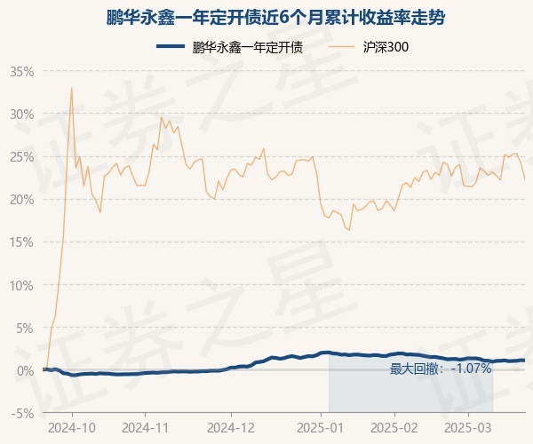 证券之星消息,3月20日,鹏华永鑫一年定开债最新单位净值为1.0214元,累计净值为1.0777元,较前一交易日上涨0.07%。历史数据显示该基金近1个月下跌0.29%,近3个月下跌0.39%,近6个月上涨1.09%,近1年上涨3.23%。该基金近6个月的累计收益率走势如下图: