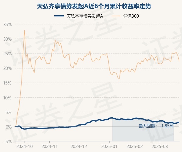 证券之星消息,3月20日,天弘齐享债券发起A最新单位净值为1.0577元,累计净值为1.1413元,较前一交易日上涨0.0%。历史数据显示该基金近1个月下跌0.6%,近3个月下跌0.85%,近6个月上涨1.42%,近1年上涨3.68%。该基金近6个月的累计收益率走势如下图: