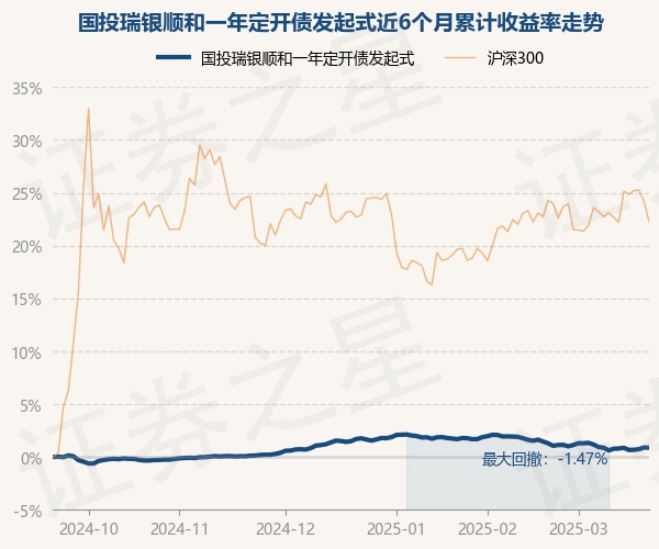 证券之星消息,3月20日,国投瑞银顺和一年定开债发起式最新单位净值为1.0256元,累计净值为1.0816元,较前一交易日上涨0.17%。历史数据显示该基金近1个月上涨0.42%,近3个月上涨0.17%,近6个月上涨1.88%,近1年上涨4.15%。该基金近6个月的累计收益率走势如下图: