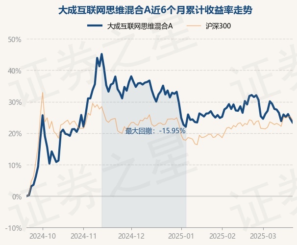 证券之星消息,3月20日,大成互联网思维混合A最新单位净值为1.6429元,累计净值为1.6429元,较前一交易日下跌0.97%。历史数据显示该基金近1个月下跌4.44%,近3个月下跌8.67%,近6个月上涨23.41%,近1年上涨5.79%。该基金近6个月的累计收益率走势如下图: