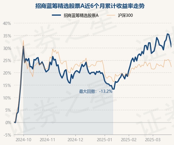 证券之星消息,3月20日,招商蓝筹精选股票A最新单位净值为0.724元,累计净值为0.724元,较前一交易日下跌1.64%。历史数据显示该基金近1个月上涨4.37%,近3个月上涨10.84%,近6个月上涨33.16%,近1年上涨24.74%。该基金近6个月的累计收益率走势如下图: