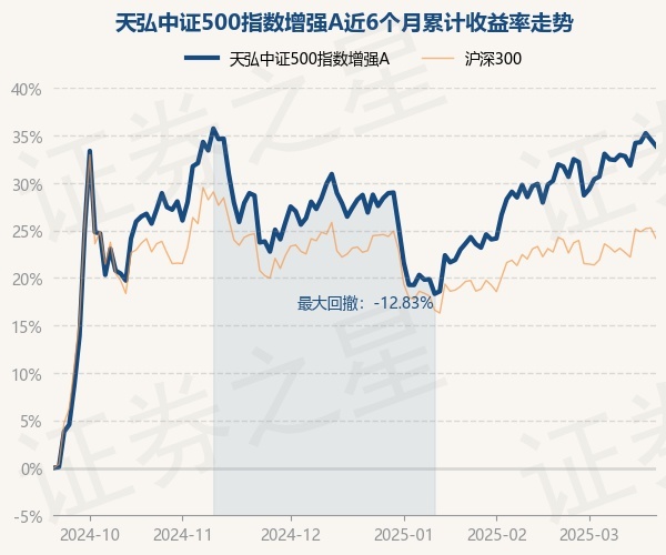 证券之星消息,3月20日,天弘中证500指数增强A最新单位净值为1.2465元,累计净值为1.2465元,较前一交易日下跌0.49%。历史数据显示该基金近1个月上涨2.81%,近3个月上涨4.0%,近6个月上涨33.89%,近1年上涨16.55%。该基金近6个月的累计收益率走势如下图:
