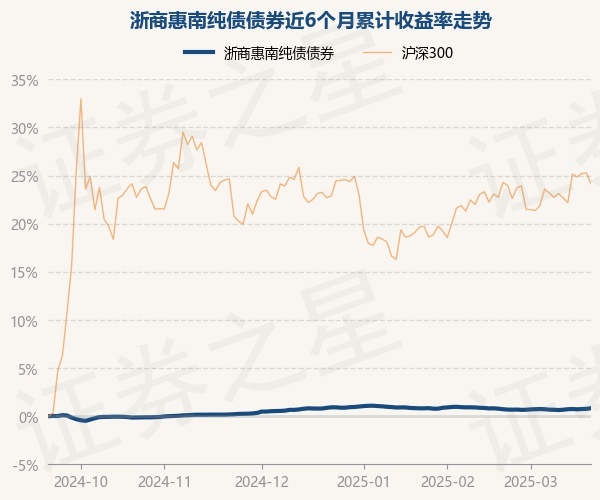 证券之星消息,3月20日,浙商惠南纯债债券最新单位净值为1.0785元,累计净值为1.2729元,较前一交易日上涨0.06%。历史数据显示该基金近1个月上涨0.05%,近3个月下跌0.04%,近6个月上涨0.82%,近1年上涨2.54%。该基金近6个月的累计收益率走势如下图: