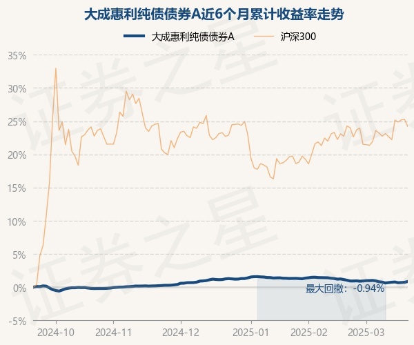 证券之星消息,3月20日,大成惠利纯债债券A最新单位净值为1.0138元,累计净值为1.3037元,较前一交易日上涨0.11%。历史数据显示该基金近1个月下跌0.3%,近3个月下跌0.39%,近6个月上涨0.85%,近1年上涨2.99%。该基金近6个月的累计收益率走势如下图: