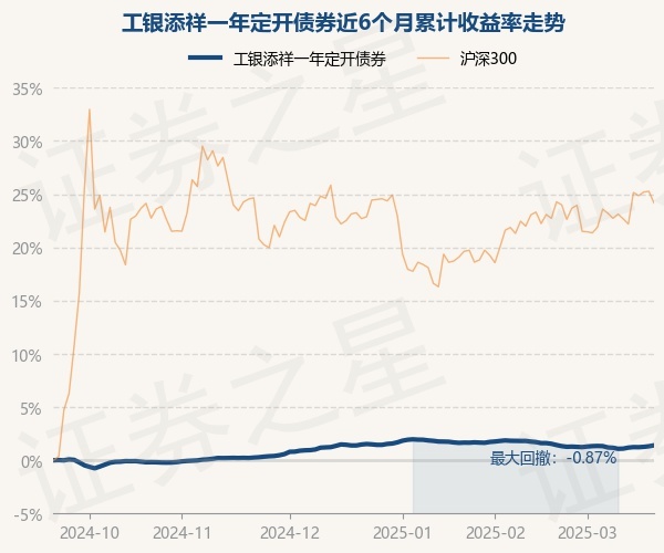 证券之星消息,3月20日,工银添祥一年定开债券最新单位净值为1.2894元,累计净值为1.2894元,较前一交易日上涨0.09%。历史数据显示该基金近1个月下跌0.15%,近3个月下跌0.08%,近6个月上涨1.4%,近1年上涨3.67%。该基金近6个月的累计收益率走势如下图: