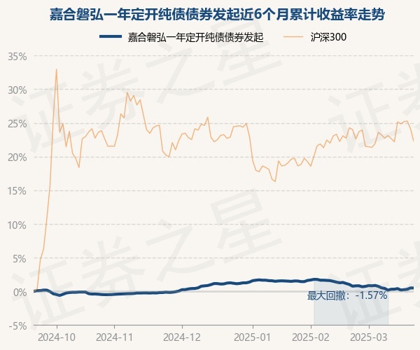 嘉合磐弘一年定开纯债债券发起为债券型-长债基金,根据最新一期基金季报显示,该基金资产配置:无股票类资产,债券占净值比111.59%,现金占净值比0.1%。