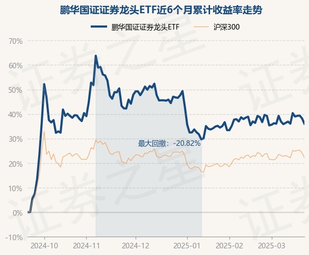 证券之星消息,3月20日,鹏华国证证券龙头ETF最新单位净值为1.1953元,累计净值为1.1953元,较前一交易日下跌0.83%。历史数据显示该基金近1个月上涨1.34%,近3个月下跌5.25%,近6个月上涨38.23%,近1年上涨26.25%。该基金近6个月的累计收益率走势如下图: