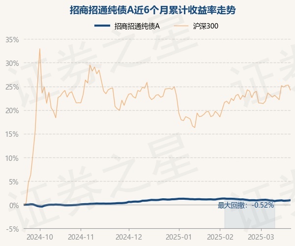 证券之星消息,3月20日,招商招通纯债A最新单位净值为1.0455元,累计净值为1.2925元,较前一交易日上涨0.08%。历史数据显示该基金近1个月下跌0.11%,近3个月下跌0.12%,近6个月上涨0.97%,近1年上涨2.85%。该基金近6个月的累计收益率走势如下图: