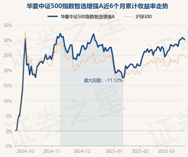 证券之星消息,3月20日,华夏中证500指数智选增强A最新单位净值为1.0649元,累计净值为1.0649元,较前一交易日下跌0.23%。历史数据显示该基金近1个月上涨2.73%,近3个月上涨1.16%,近6个月上涨30.06%,近1年上涨10.42%。该基金近6个月的累计收益率走势如下图:
