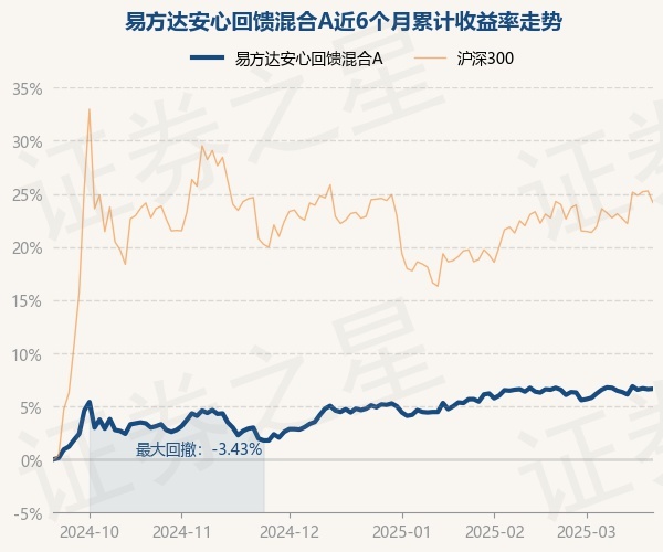 证券之星消息,3月20日,易方达安心回馈混合A最新单位净值为2.389元,累计净值为2.389元,较前一交易日上涨0.04%。历史数据显示该基金近1个月上涨0.08%,近3个月上涨1.92%,近6个月上涨6.65%,近1年上涨3.82%。该基金近6个月的累计收益率走势如下图: