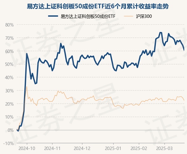 证券之星消息,3月20日,易方达上证科创板50成份ETF最新单位净值为1.0891元,累计净值为0.7631元,较前一交易日下跌1.13%。历史数据显示该基金近1个月上涨2.92%,近3个月上涨5.12%,近6个月上涨64.02%,近1年上涨30.74%。该基金近6个月的累计收益率走势如下图: