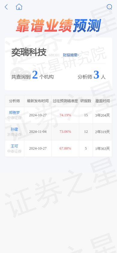 如果您对这家公司感兴趣,可以参考证星研究院统计的奕瑞科技的分析师业绩预测数据,其中根据中泰证券的分析师郑雅梦预测公司未来PE为19.0(更多特色估值数据尽在证星研究院,所有数据均来源公开资料,期且所有资料都存在一定时间滞后,所有相关数据均不可作为投资决策单一依据)。
