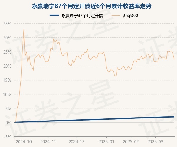 证券之星消息,3月21日,永赢瑞宁87个月定开债最新单位净值为1.0938元,累计净值为1.1858元,较前一交易日上涨0.01%。历史数据显示该基金近1个月上涨0.29%,近3个月上涨0.94%,近6个月上涨1.94%,近1年上涨3.95%。该基金近6个月的累计收益率走势如下图: