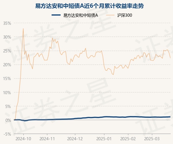 证券之星消息,3月21日,易方达安和中短债A最新单位净值为1.069元,累计净值为1.129元,较前一交易日上涨0.02%。历史数据显示该基金近1个月上涨0.08%,近3个月上涨0.21%,近6个月上涨1.09%,近1年上涨2.41%。该基金近6个月的累计收益率走势如下图: