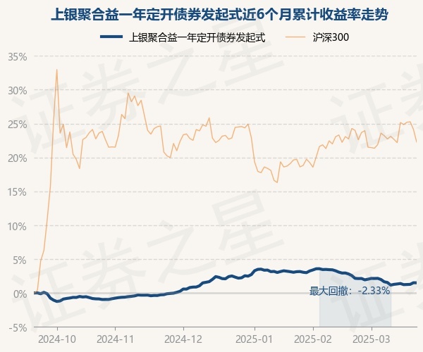 证券之星消息,3月21日,上银聚合益一年定开债券发起式最新单位净值为1.0629元,累计净值为1.0996元,较前一交易日下跌0.01%。历史数据显示该基金近1个月下跌1.04%,近3个月下跌0.9%,近6个月上涨1.5%,近1年上涨5.72%。该基金近6个月的累计收益率走势如下图: