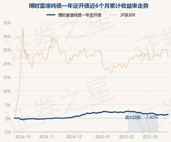 证券之星消息,3月21日,博时富璟纯债一年定开债最新单位净值为1.0252元,累计净值为1.1093元,较前一交易日下跌0.05%。历史数据显示该基金近1个月下跌0.43%,近3个月下跌0.64%,近6个月上涨1.34%,近1年上涨3.47%。该基金近6个月的累计收益率走势如下图: