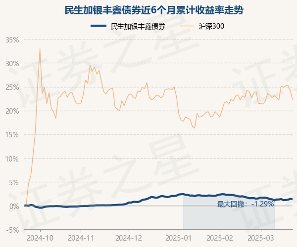 证券之星消息,3月21日,民生加银丰鑫债券最新单位净值为1.0537元,累计净值为1.146元,较前一交易日下跌0.06%。历史数据显示该基金近1个月下跌0.32%,近3个月下跌0.58%,近6个月上涨1.36%,近1年上涨3.45%。该基金近6个月的累计收益率走势如下图: